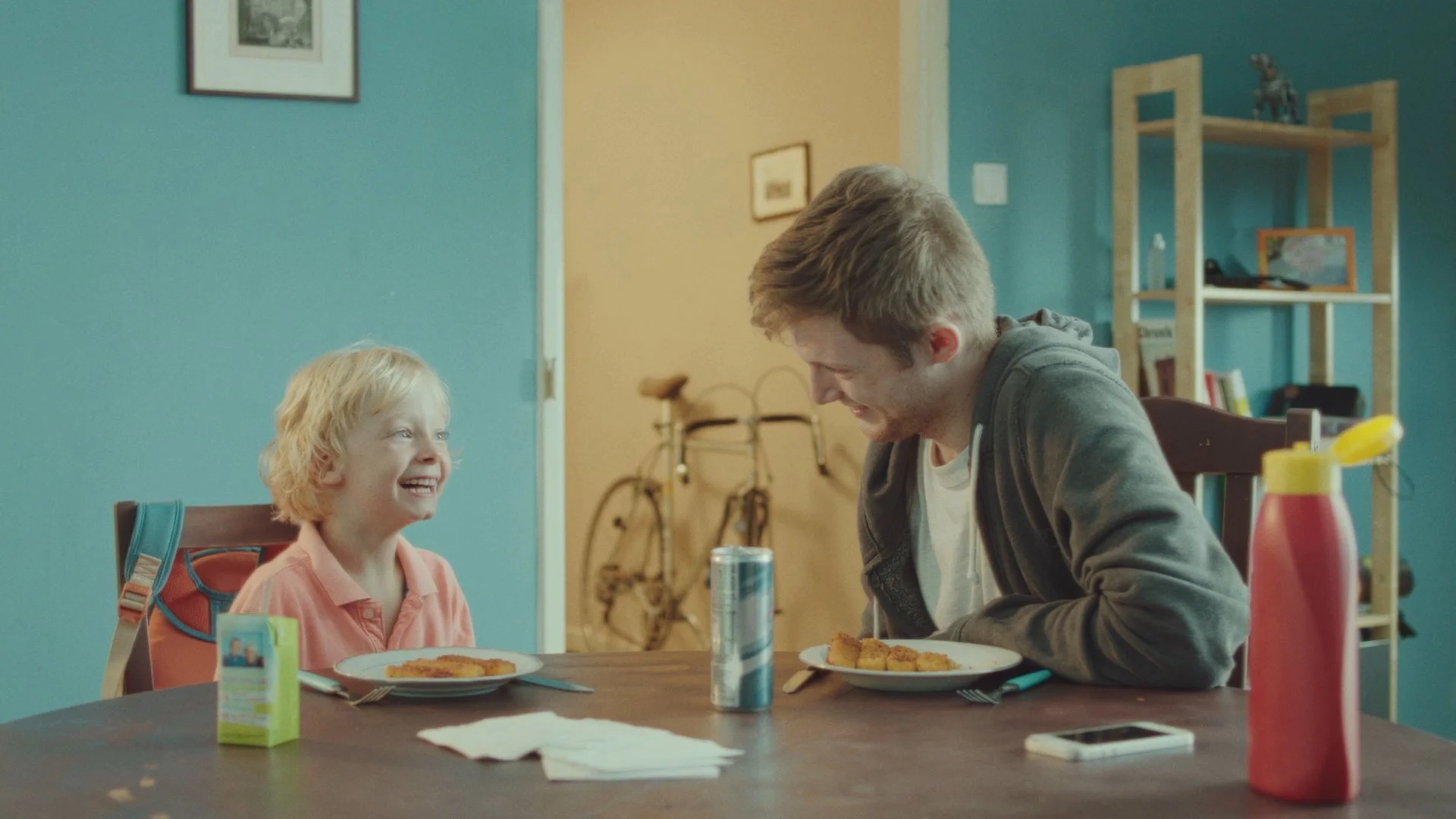 „Fischstäbchen“ erzählt die Geschichte von Michi, einem ziellosen jungen Mann, der versucht, eine Beziehung zu seinem 5-jährigen Sohn Luis aufzubauen. Michi sucht gemeinsam mit Luis nach seinem eigenen Weg, um Vater zu sein.